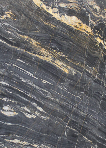 It is possible to create distinct appearances from the same stone by changing the cutting direction while turning marble blocks into slabs. Nero Gali is the result of such process, resembling a painting. Obtained by reverse cutting method is Nero Gali whereas flat cutting produces Nero Gali V. Cut.