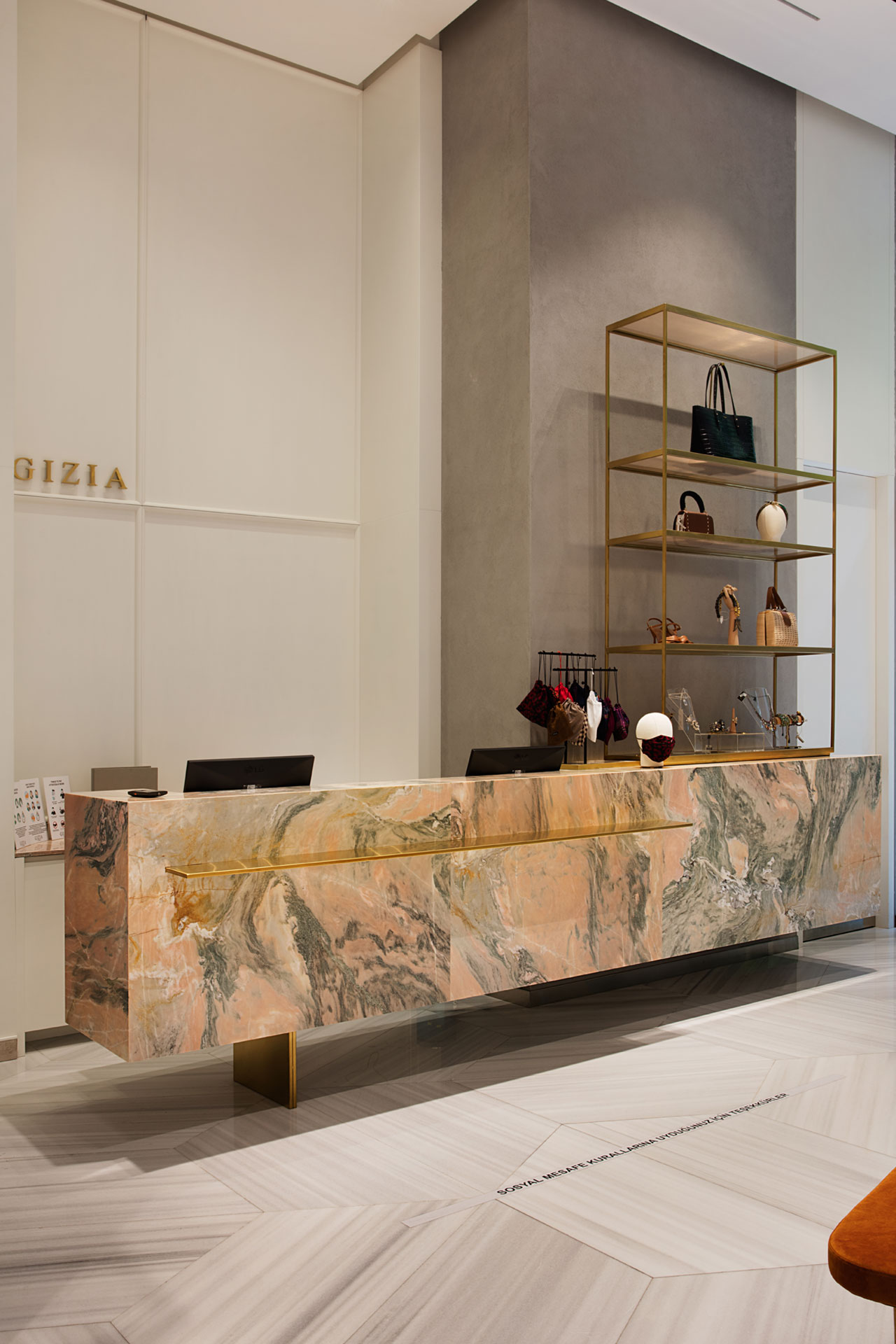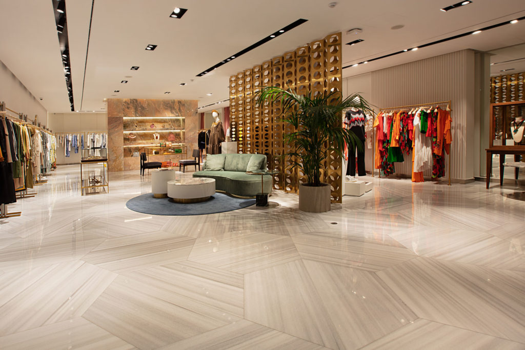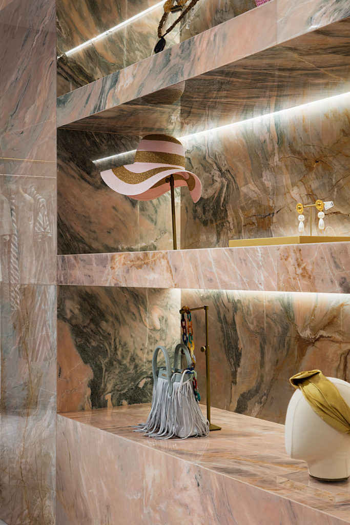 In this store project by the Architect Arif Özden, Stoneline’s natural stone collection was used for marble stones. The floors are covered with Marmara Stripes while the walls of the store are covered with Breccia and Caldere Pink that are some of the magical marble varieties. You can also discover hundreds of stones from the natural stone selection of Stoneline for your elegant designs.