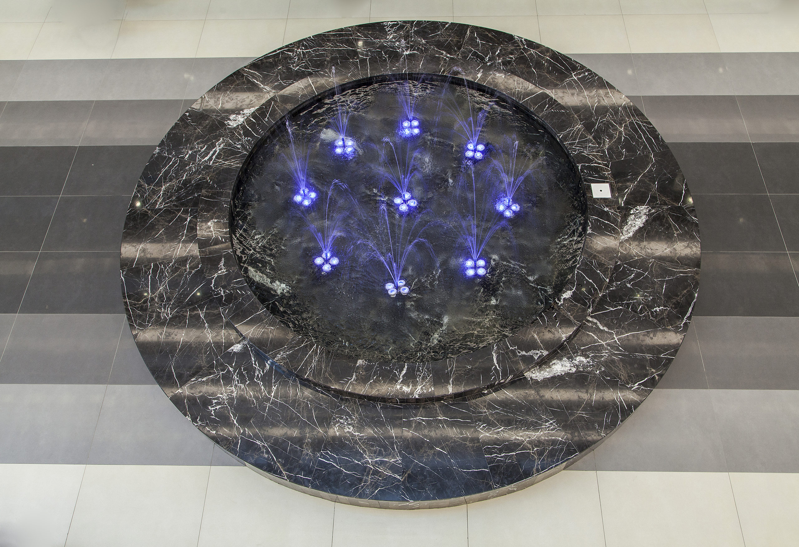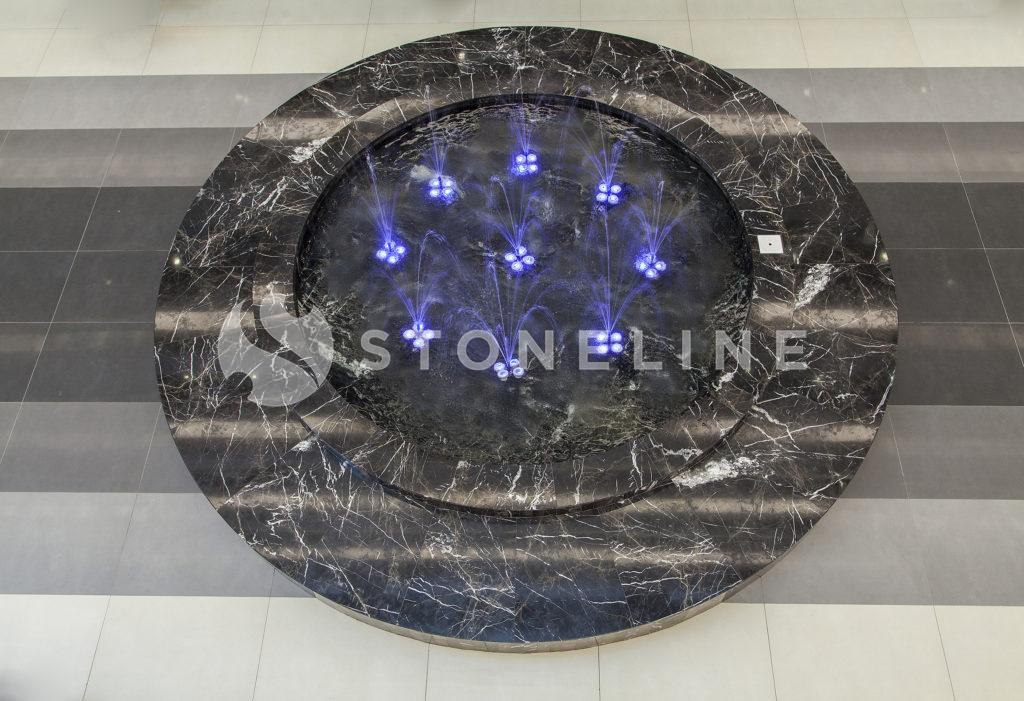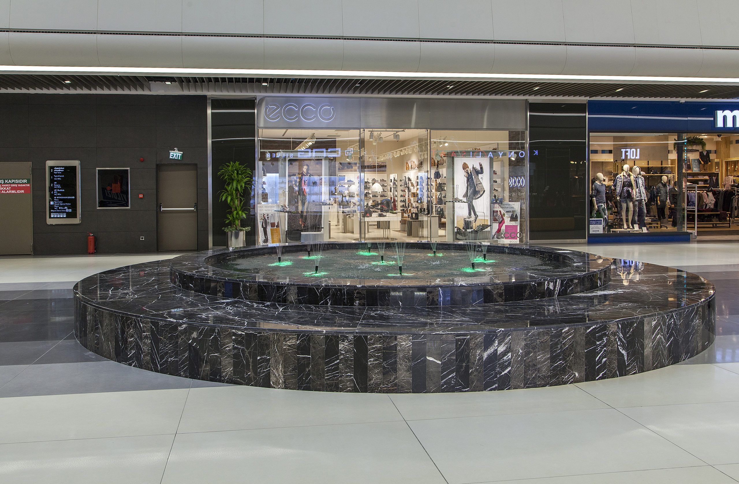 The pool of the mall was designed by Arketipo Design to attain perfect harmony between black and brown. You can also discover hundreds of stones from the natural stone selection of Stoneline for mall designs.