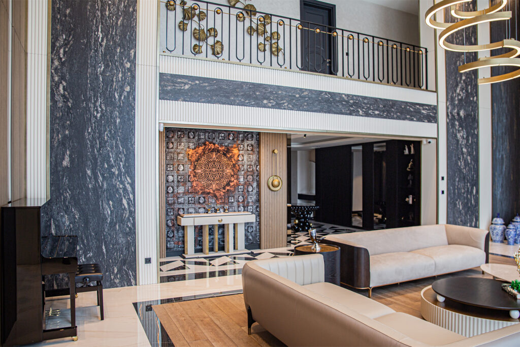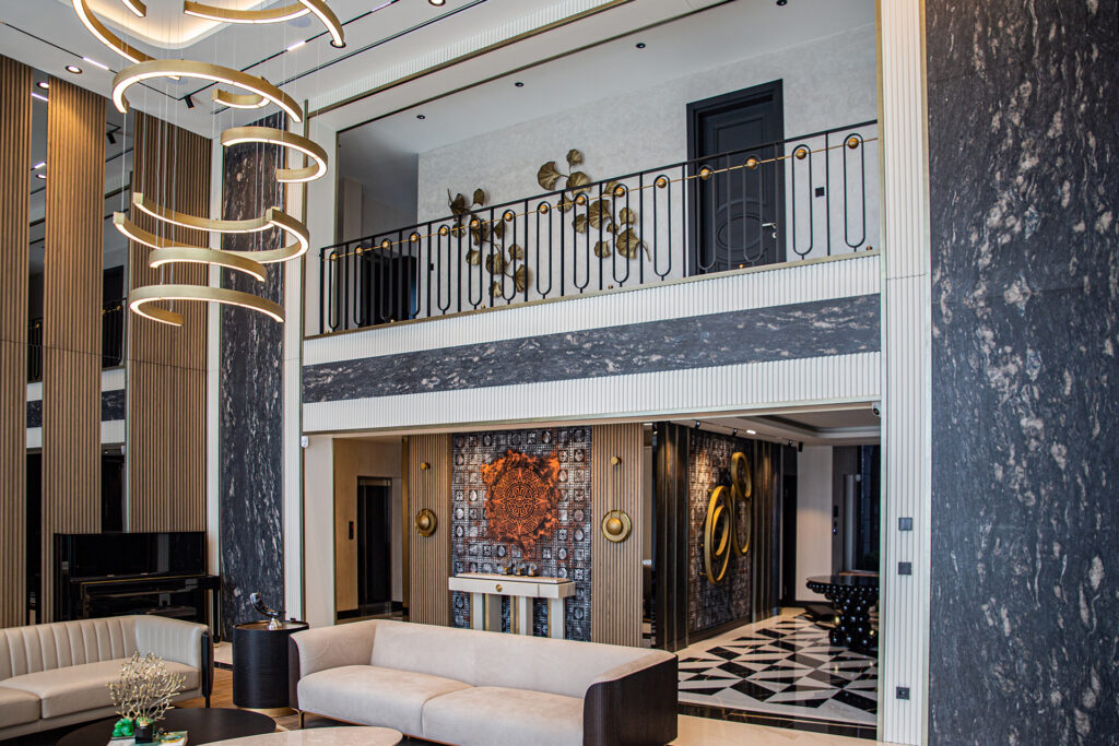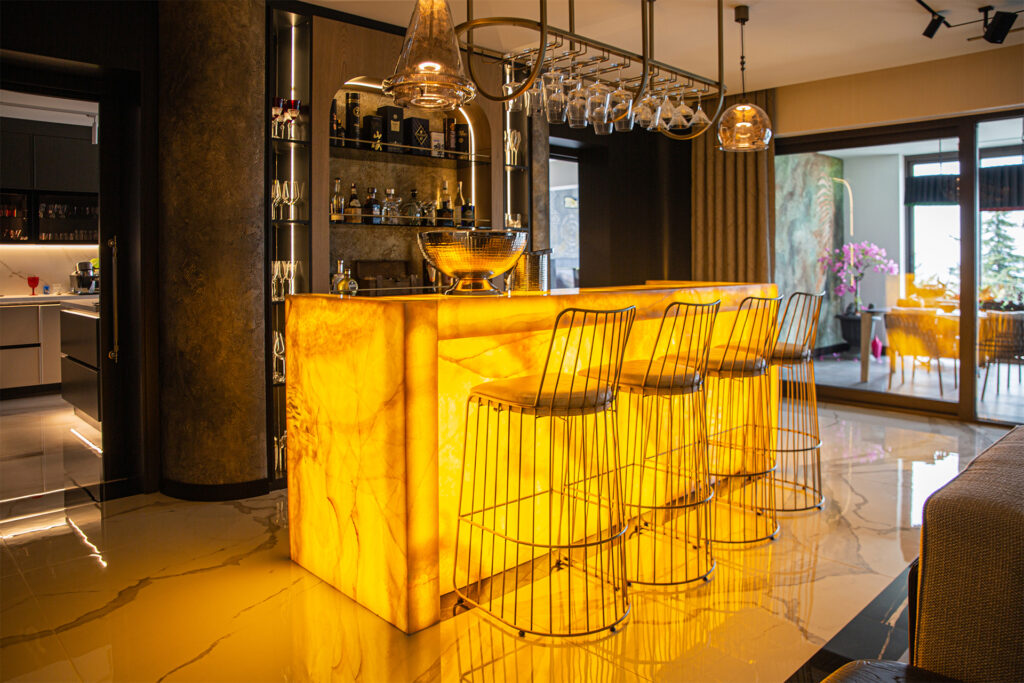 In this exclusive residential project bearing the signature of Art Kafası Architecture, our Stoneline natural stone collection features Cosmos Black, one of our most special marbles, in the common areas. Mexico Yellow Onyx, which reflects the harmony of yellow in nature, was also chosen.