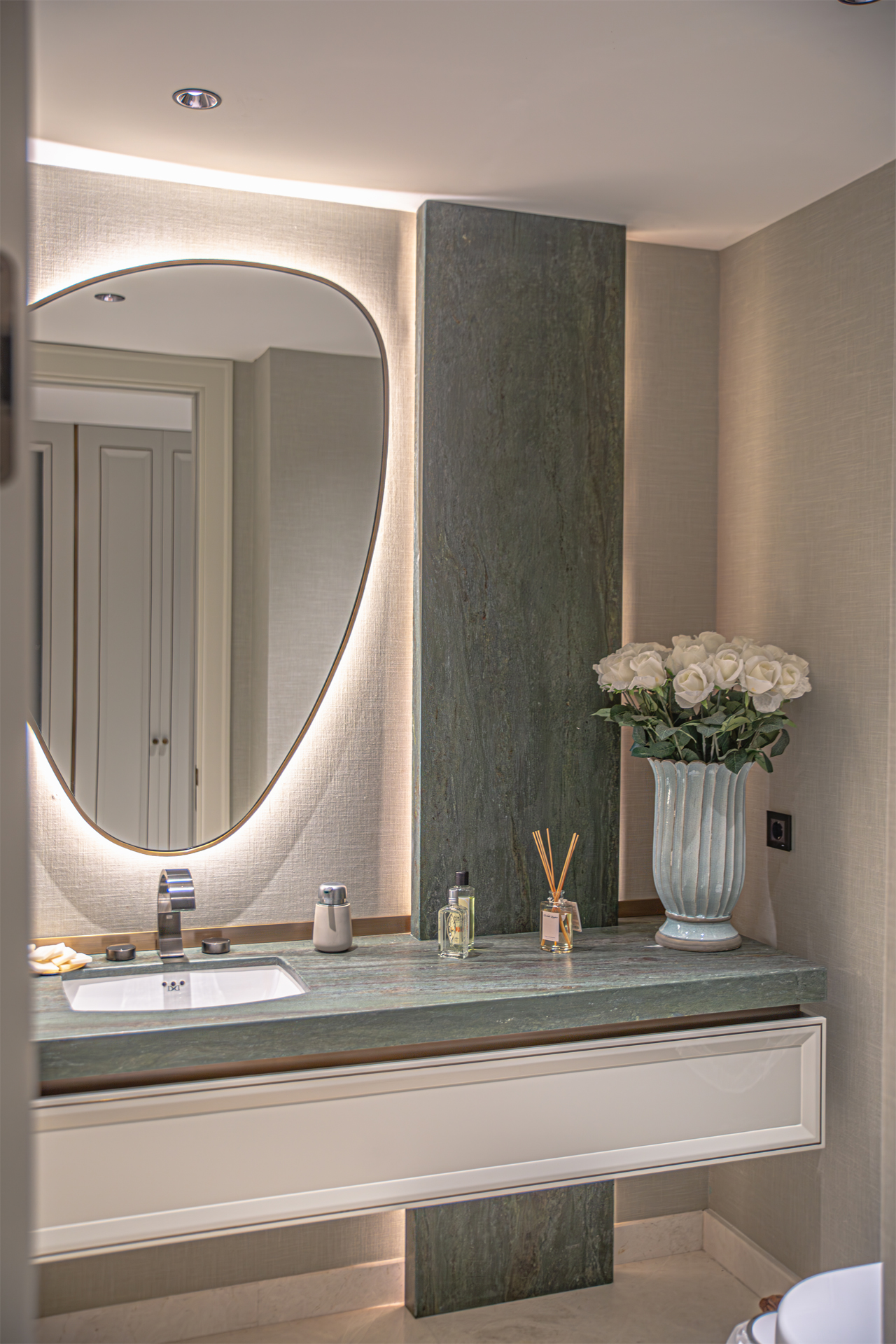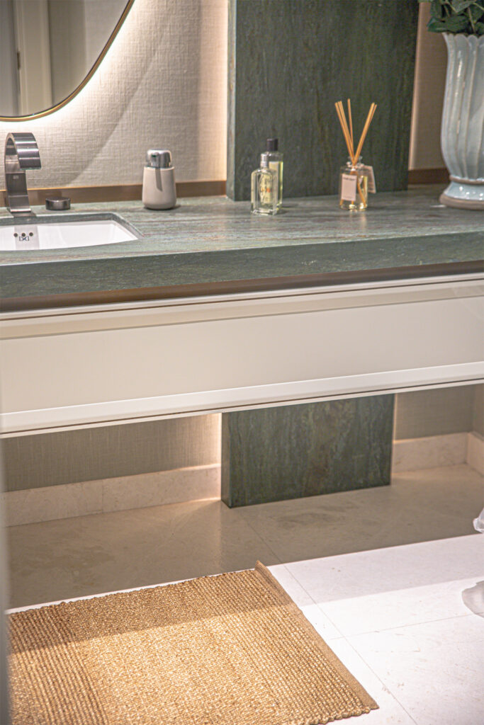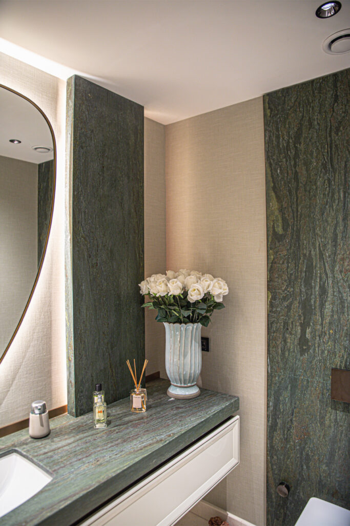 In this exclusive residential project bearing the signature of DK Architecture, our Stoneline natural stone collection features Carrara, one of our most special marbles, in the common areas. Verde Brinisi, which reflects the harmony of green in nature, was also chosen.