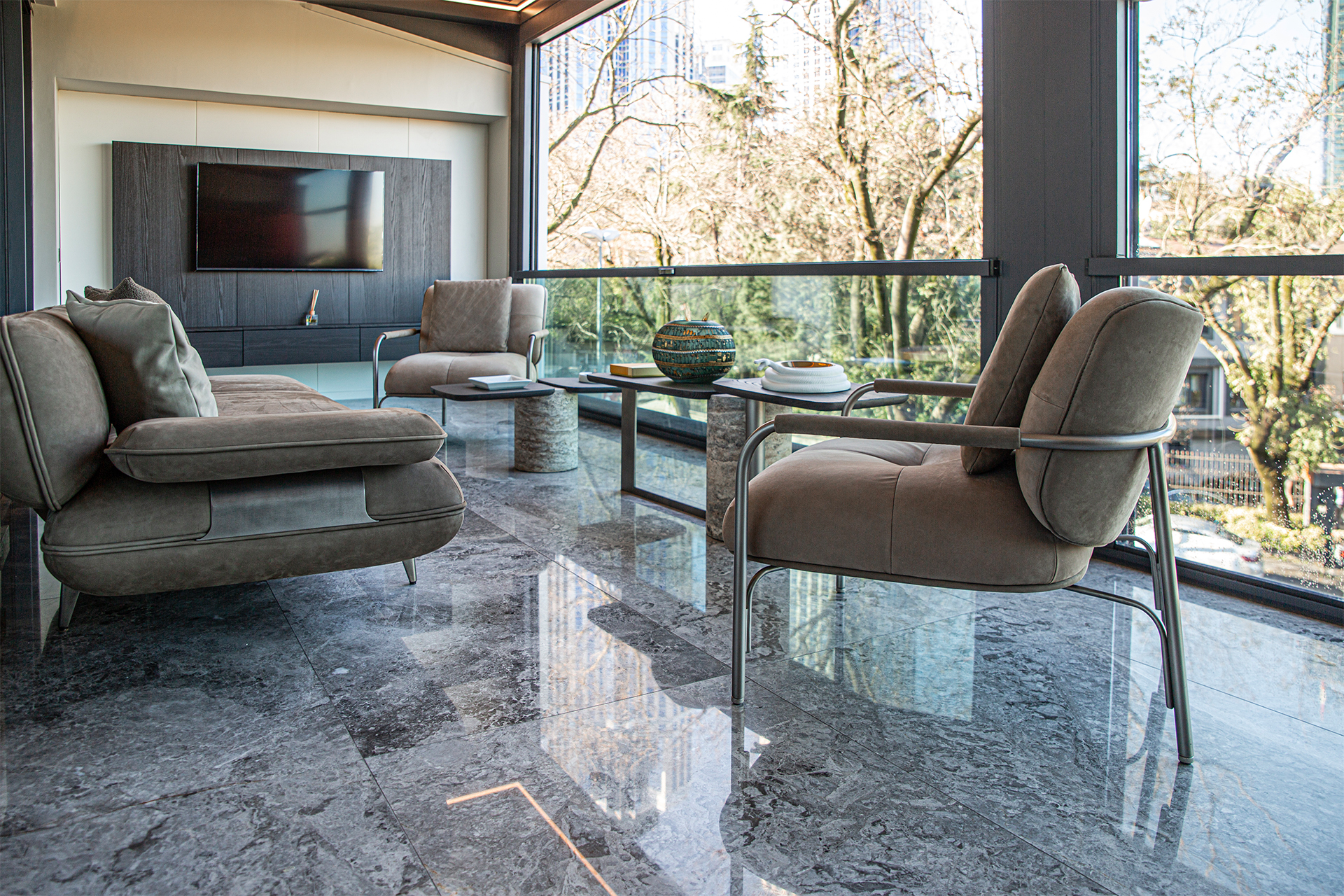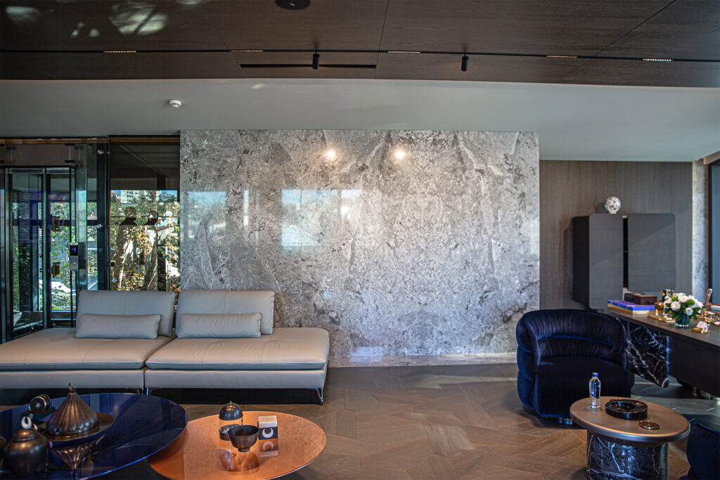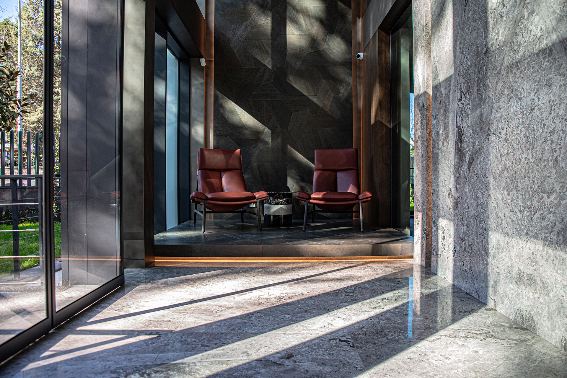 While Tundra Gray stone adds a contemporary touch to your space, it also attracts attention with its durability and elegance. This special office project offers an excellent option for those who want to stand out in the business world. The unique texture of natural stone increases the prestige of your business environment by offering an impressive welcome to your employees and customers.