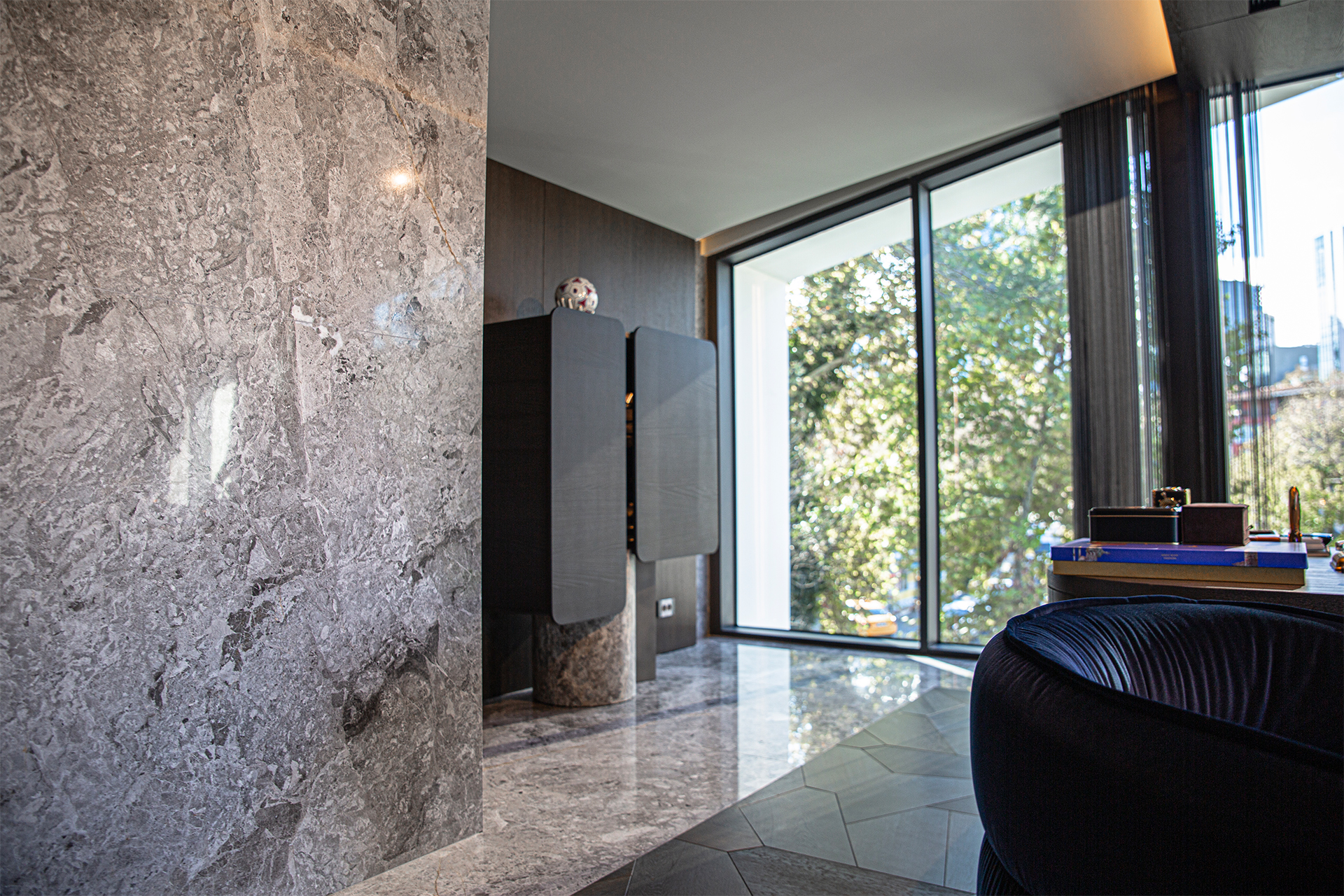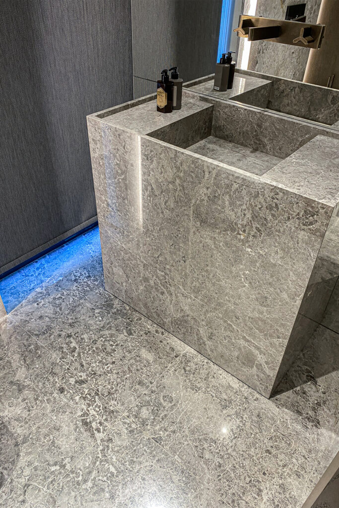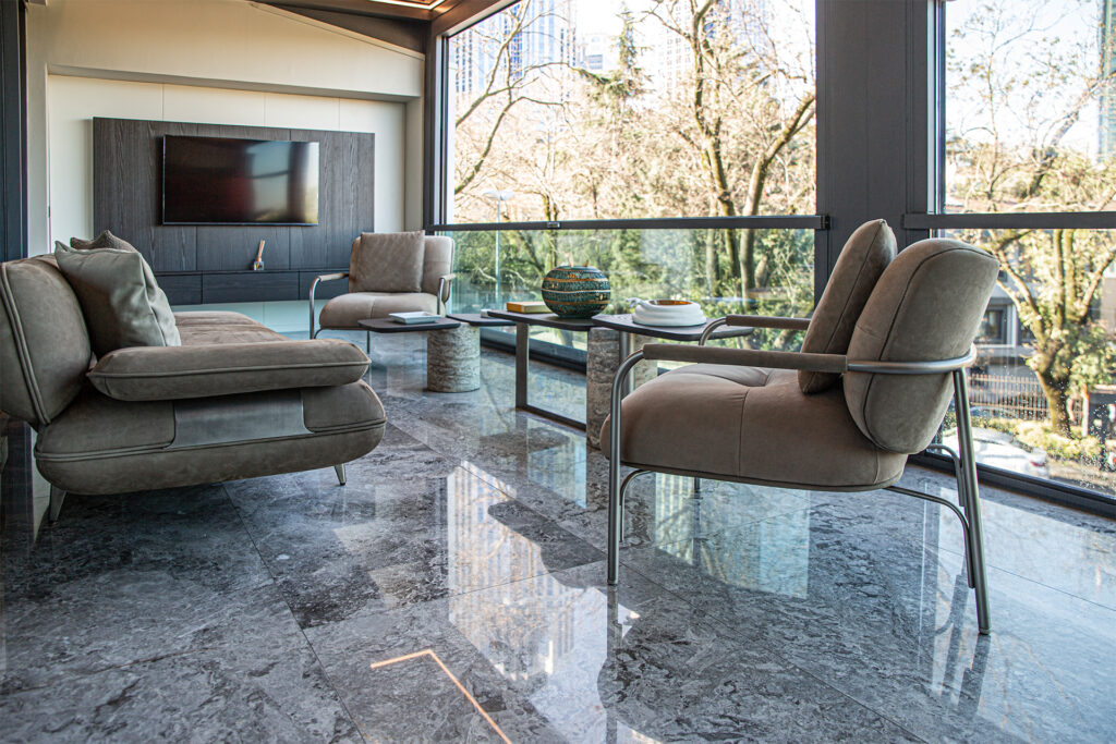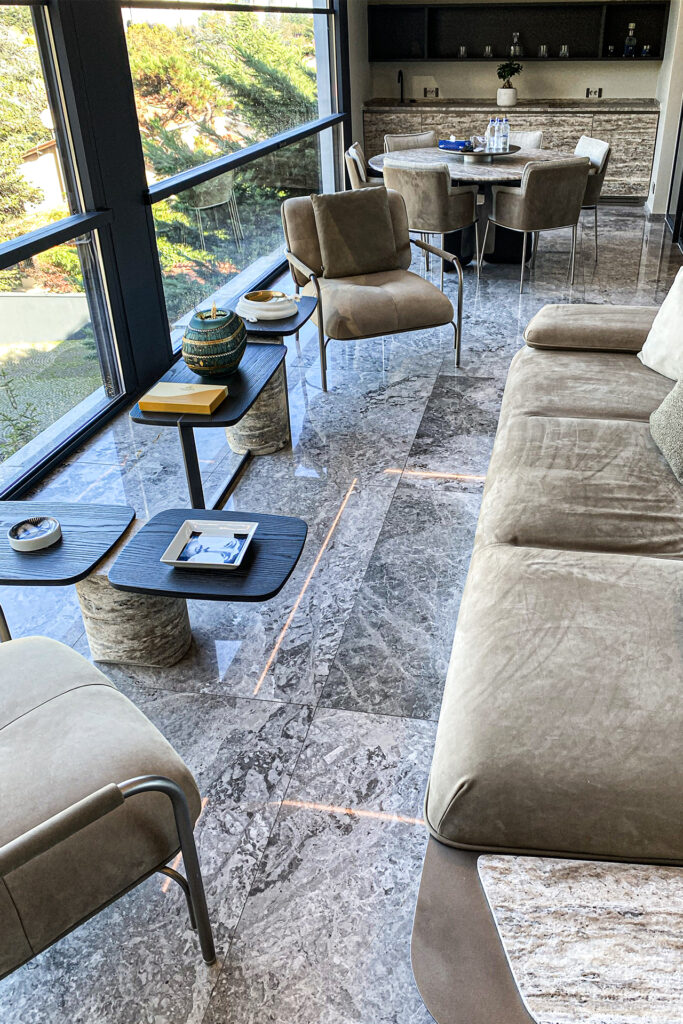 While Tundra Gray stone adds a contemporary touch to your space, it also attracts attention with its durability and elegance. This special office project offers an excellent option for those who want to stand out in the business world. The unique texture of natural stone increases the prestige of your business environment by offering an impressive welcome to your employees and customers.
