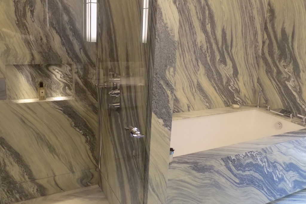 Although resembling travertine, Titanium is a marble which would be the best choice for those looking for warm and intimate atmosphere with its linear vein texture and soft colors. This unique marble is accompanied by Blue Ajia, Ivory Grey, Metalicus, Cream Beige and Coffee Serpegiante from the natural stone catalogue of Stoneline in this project by Erginoğlu & Çalışlar Architecture. You can make use of Stoneline’s natural stone collection in your office designs.