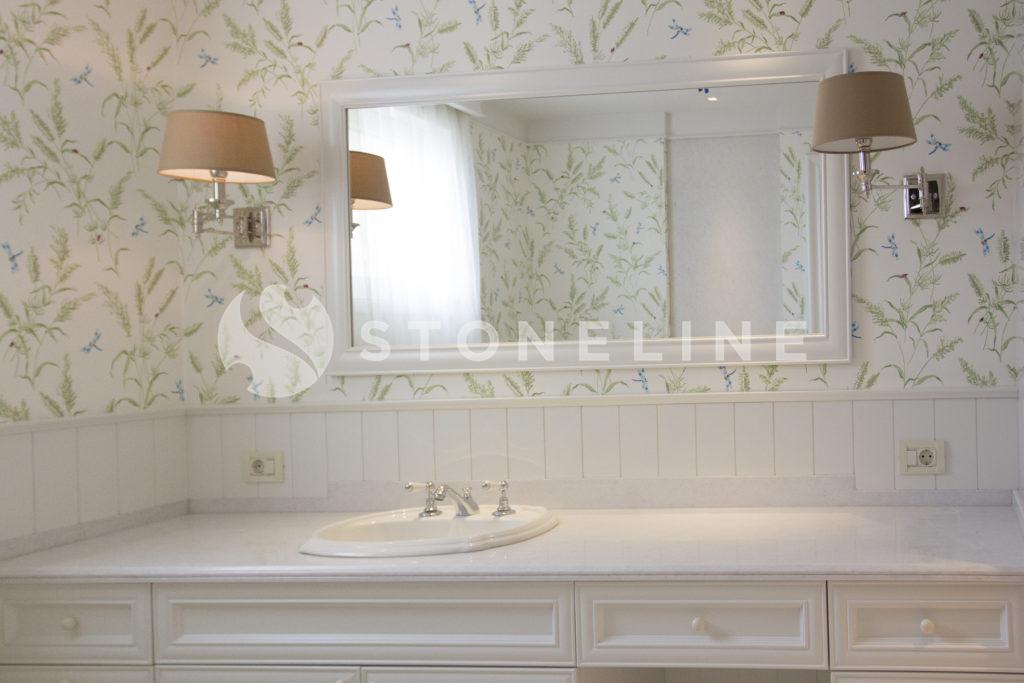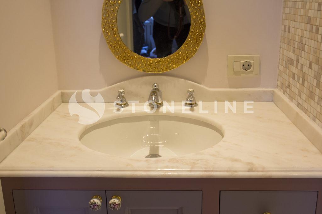 Designed by Galip Kaynar, the ideal was to create a neat and stylish bathroom. King White and Pink Pearl were the choices in this project to elevate spaciousness and tranquility with their colors and homogenity. The second bathroom is decorated with Grey Vision for a matchless harmony with metal details. You can also discover hundreds of stones from the natural stone selection of Stoneline for your elegant designs.