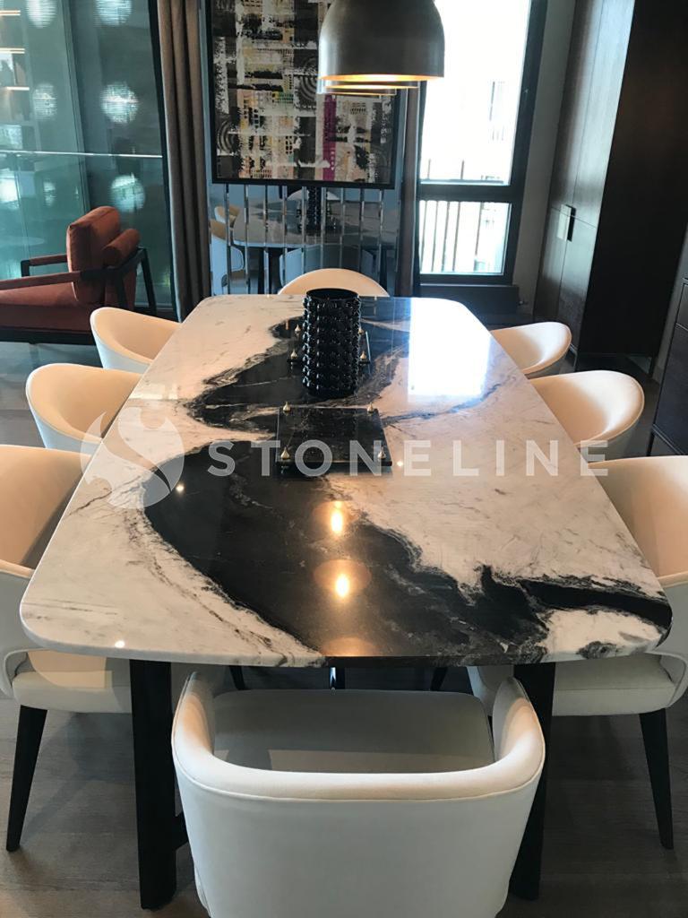 The combination of black and white comes to life with Polar White and King Black marbles as the indispensable element of timeles designs. Designed by İlkay Ala Architecture, this project is enriched with Elegant Grey that reflects the dance of colors on the make-up table. Hundreds of natural stones are ready to inspire designers from the natural stone collection of Stoneline.