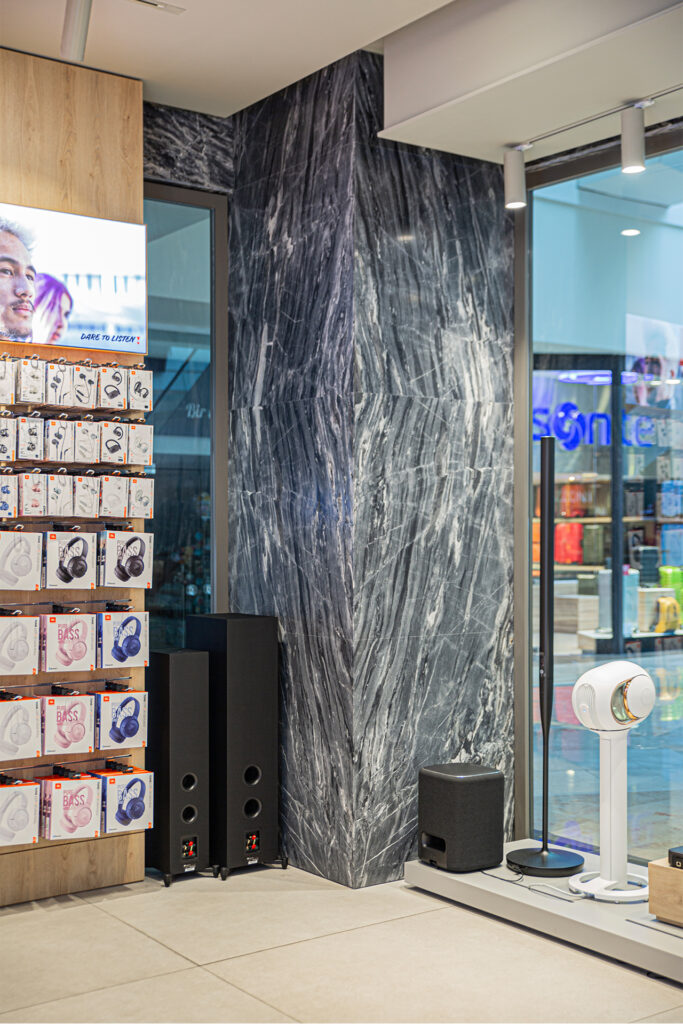 The store located in İstinye Park JBL AVM Project has a wonderful appearance with the unique Salvadori stone from our quarry. It offers its customers an unforgettable shopping experience by offering a renewed and aesthetic atmosphere.