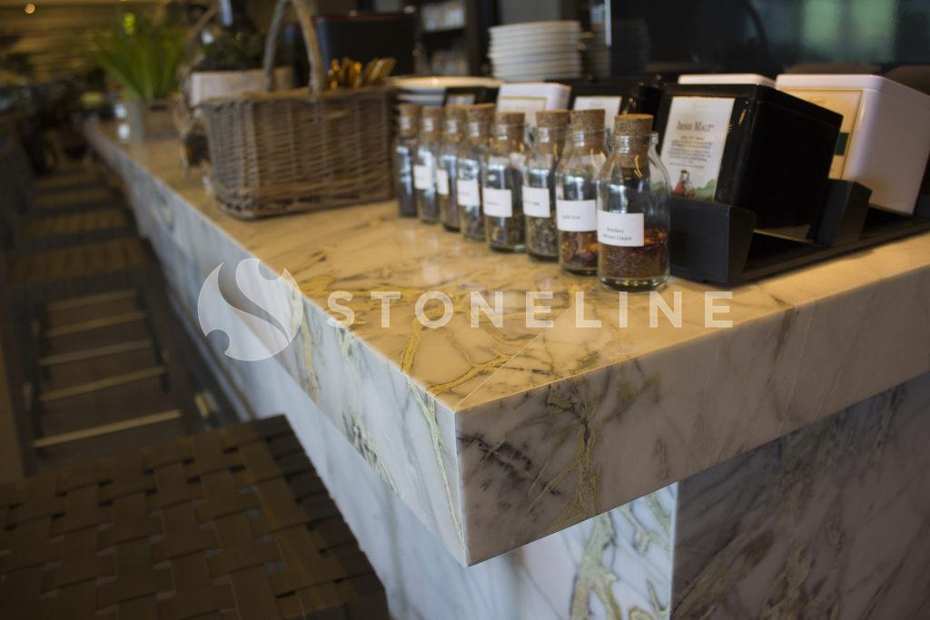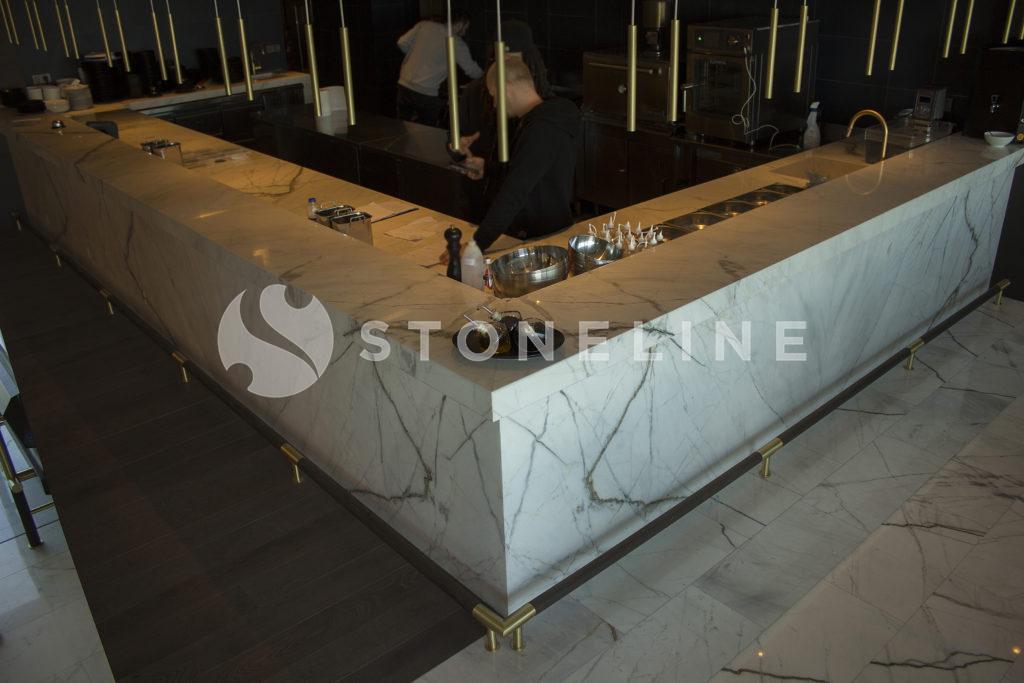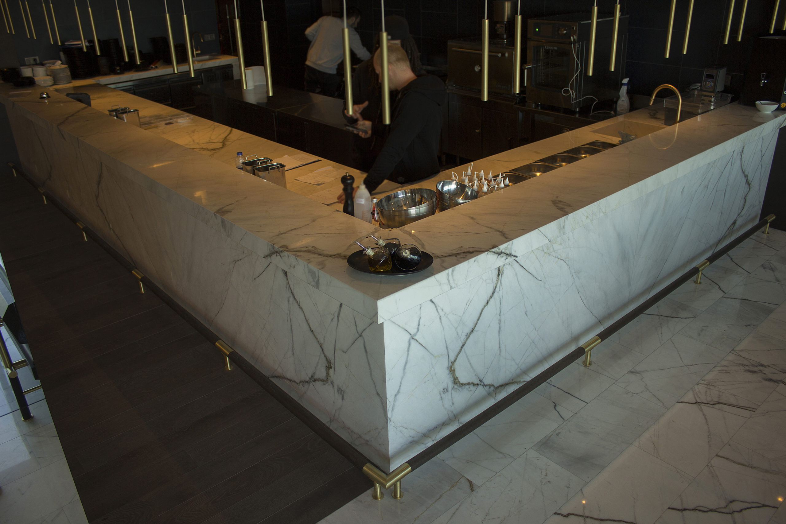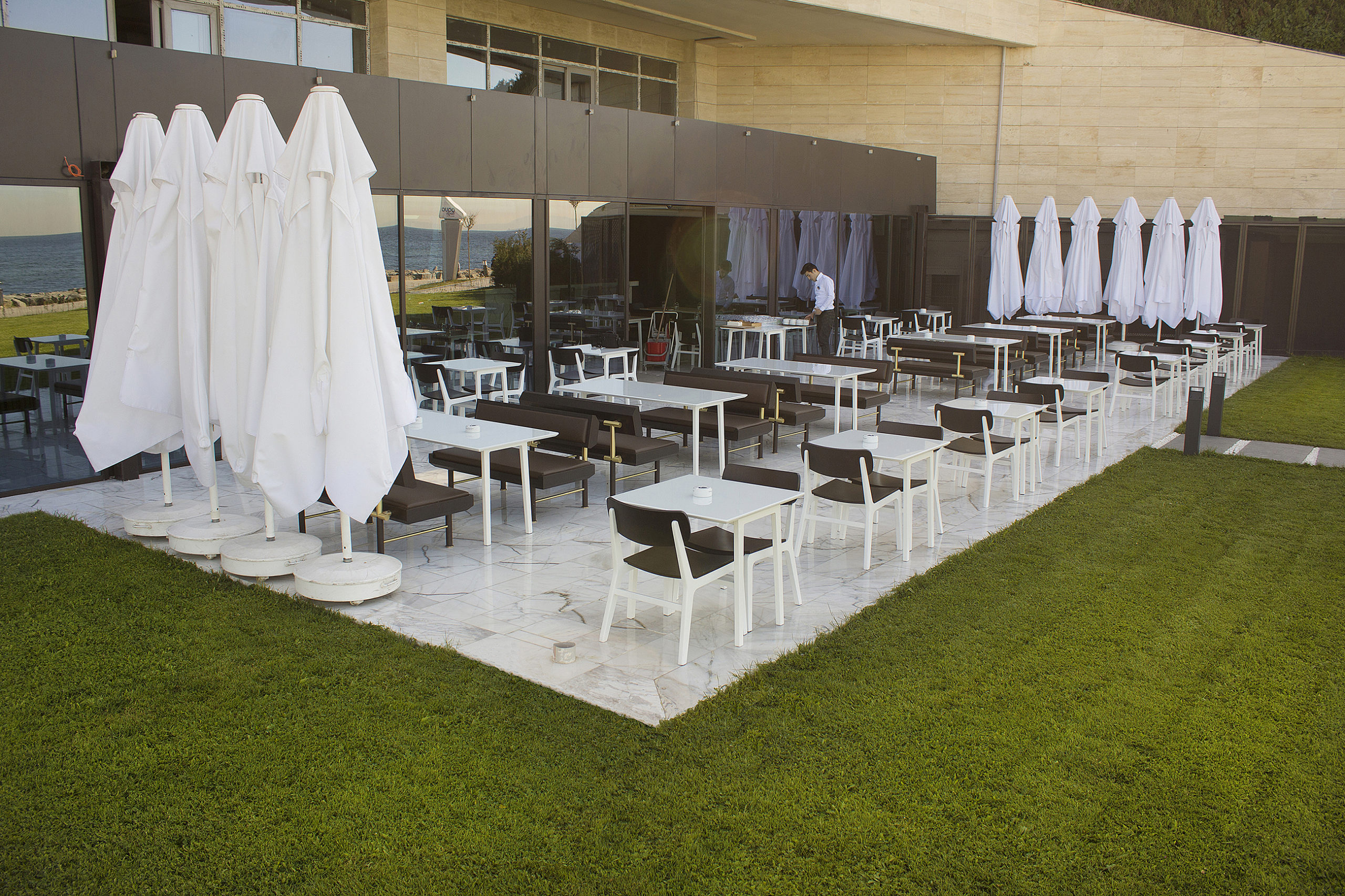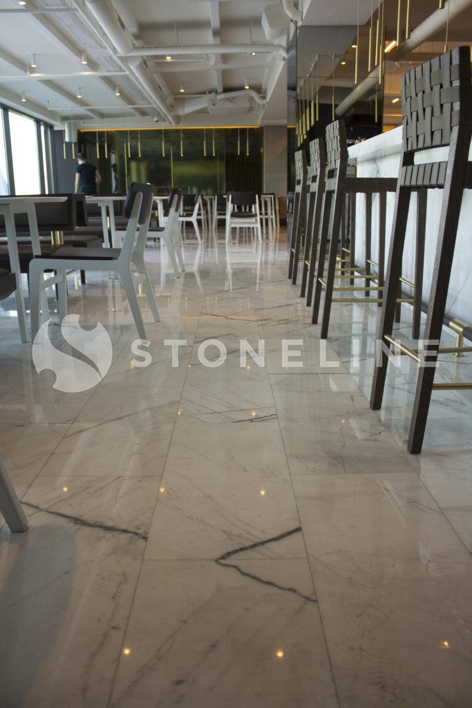 Designed by the Architect Murat Kut, this sports complex embodies a minimalist approach. In the restaurant court, Calacatta Aria was the choice of the designer for its soft lines. Changing rooms and bathrooms, on the other hand, are covered with Statuaretto and Carrara Gioia marbles – some of the finest examples of Italian classics while the garden is decorated with Basalt.