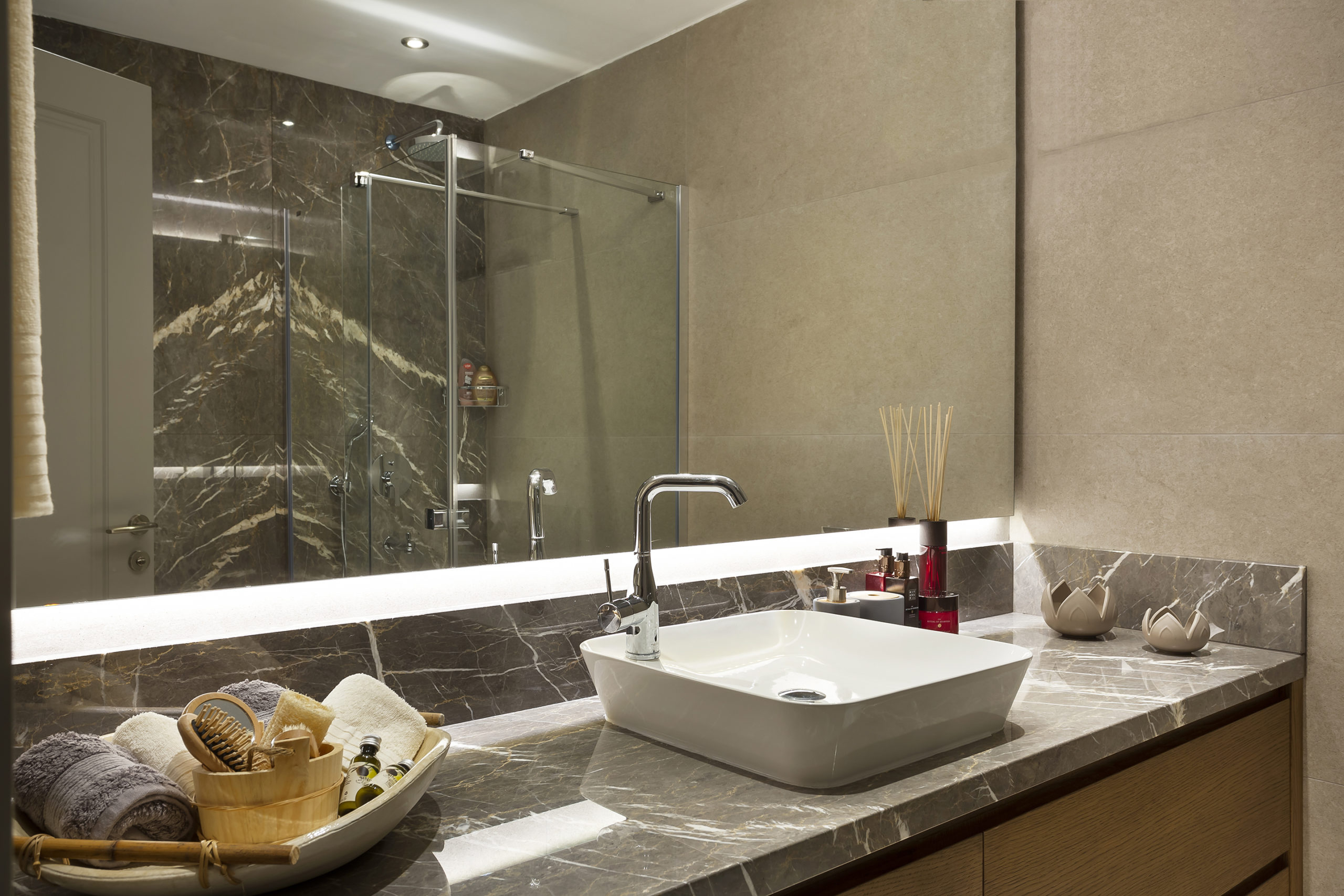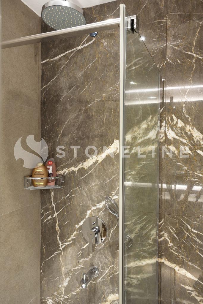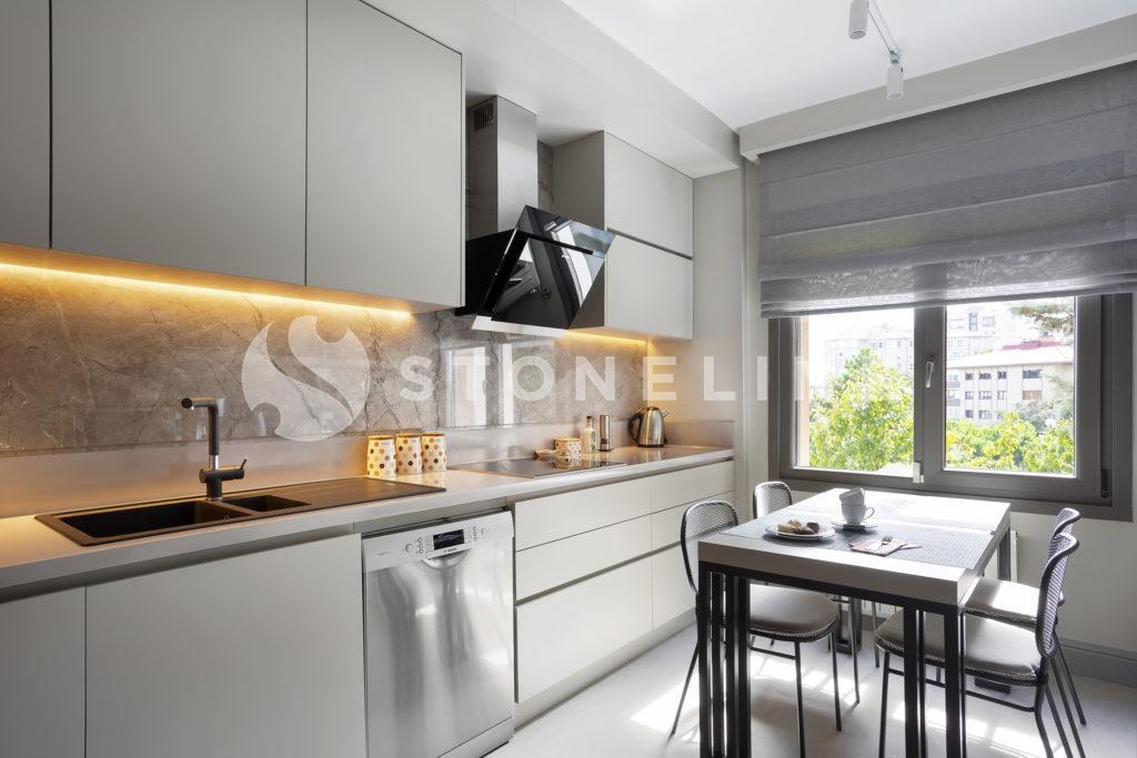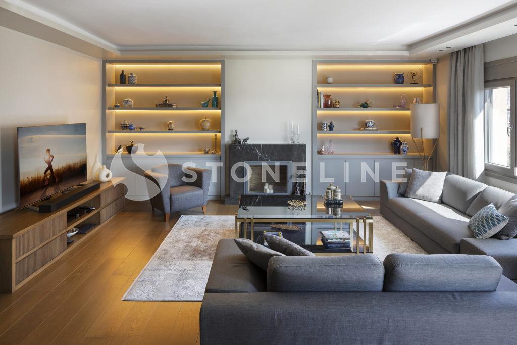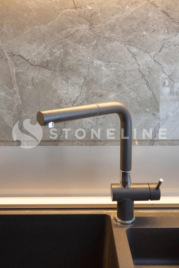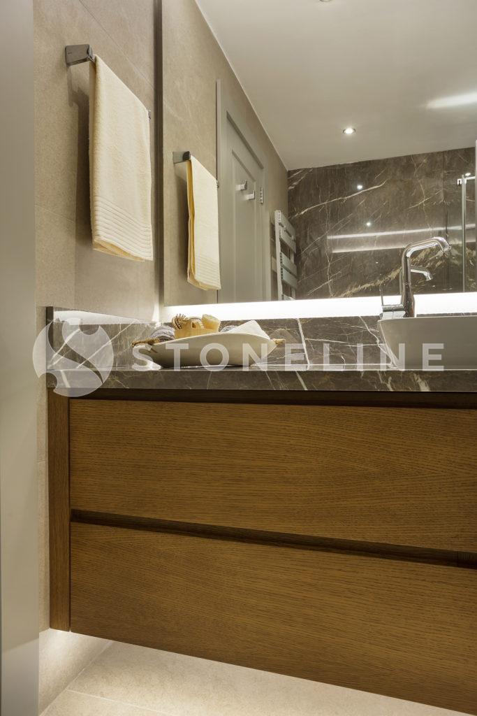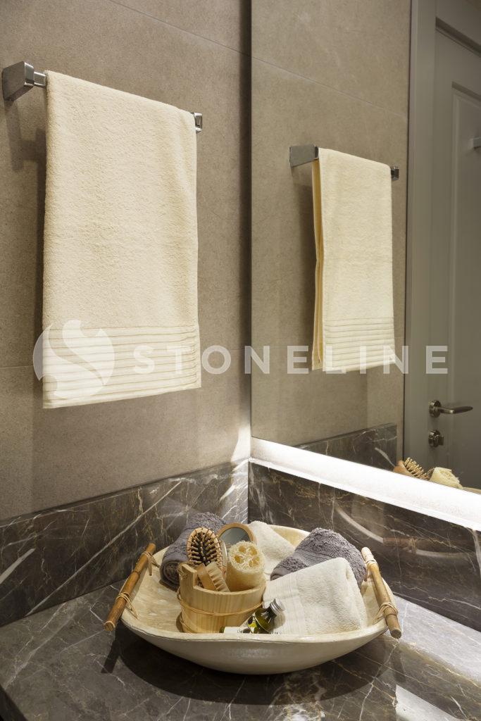 This residence project by Monblab Design is dominated by a minimalist approach. Graphite is preferred in the fireplace for its soft lines and noble color while Valentino Grey decorates the kitchen as one of the rare beauties in nature. Gothic Grey, on the other hand, is preferred in the bathroom as it also offers the possibility of bookmatch. You can make use of Stoneline’s natural stone collection in your fireplace designs.