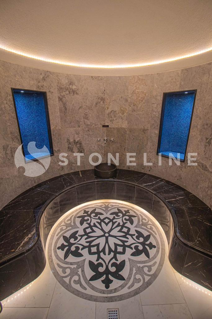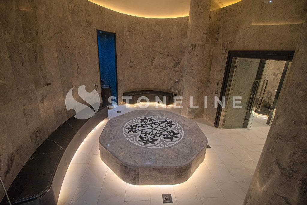 In this Turkish Bath design by Nergiz Decoration, Tundra Grey and New St. Laurent were used for an authentic appearance. You can also discover hundreds of stones from the natural stone selection of Stoneline for your elegant designs.