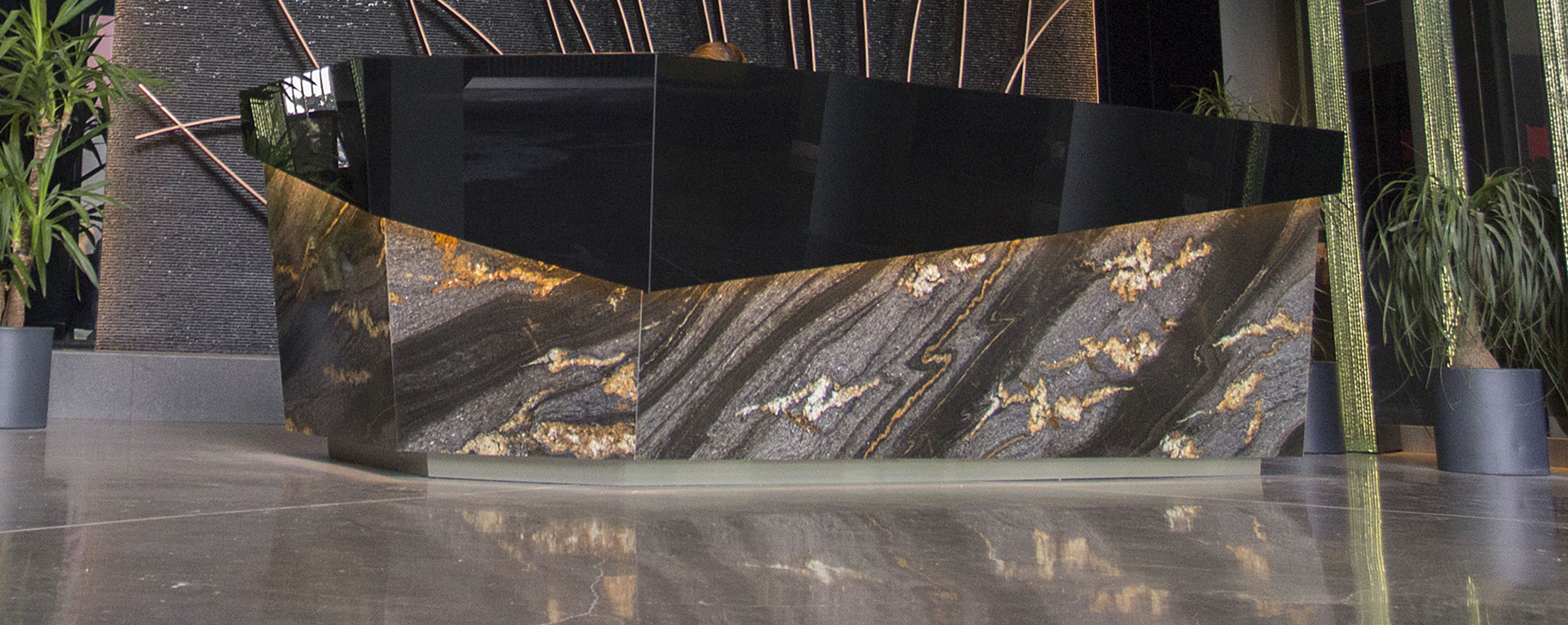 Formed in the universe in thousands of years, granite Cosmos Black redefines different surfaces with its own story. The authentic color and shiny texture turns the space into a living organism with its hydro finish. You can also discover hundreds of stones from the natural stone selection of Stoneline for your elegant designs.