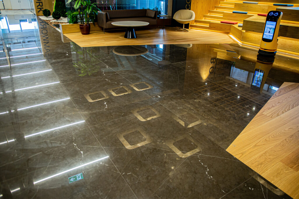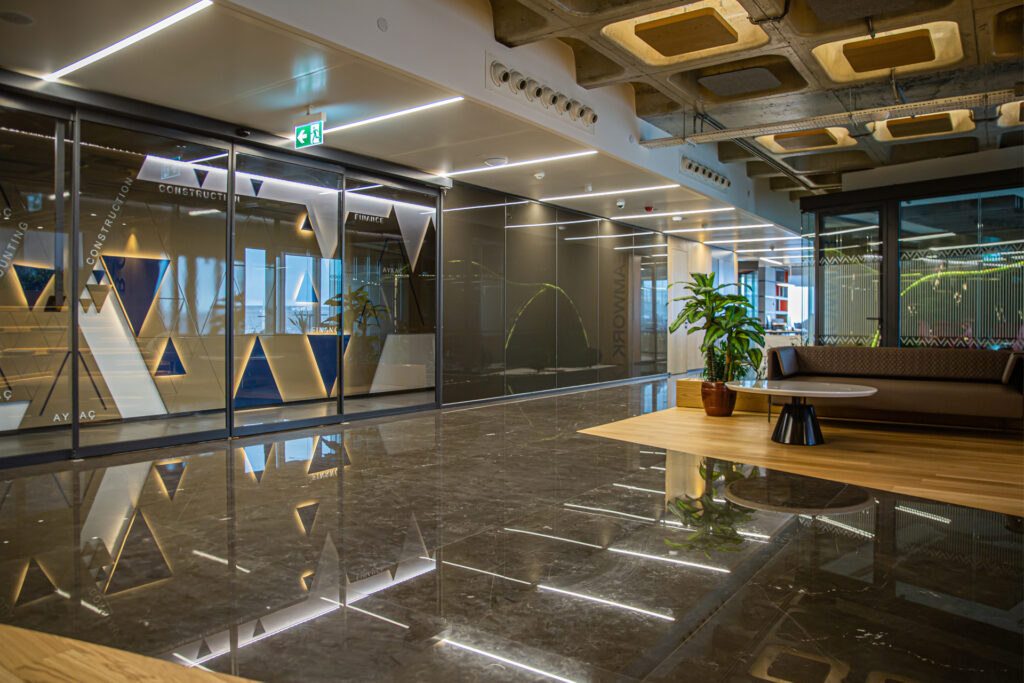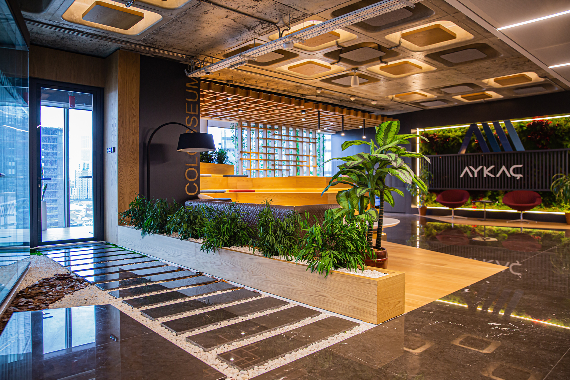 Graphite was mined from where it had been waiting for thousands of years to play the lead role in such unique design. Its color, vein texture and structure are the main elements complementing this office project. You can also discover hundreds of stones from the natural stone selection of Stoneline for your elegant office designs.