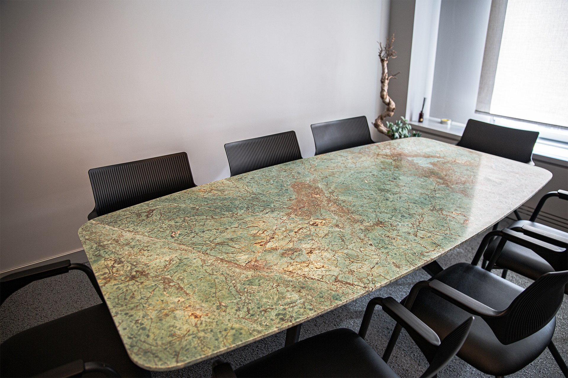 Amazon Green stone adds vibrancy and elegance to your spaces with its unique green tones and patterns reflecting the energy of nature. This stone not only creates a natural atmosphere in your office projects but also provides a modern and sophisticated appearance.