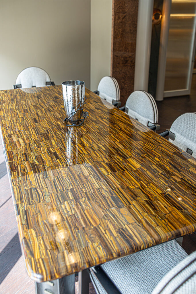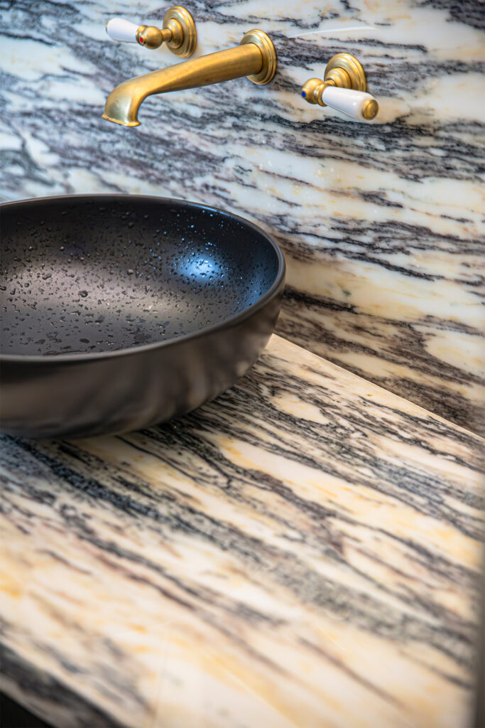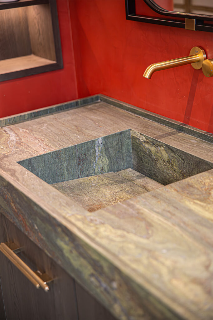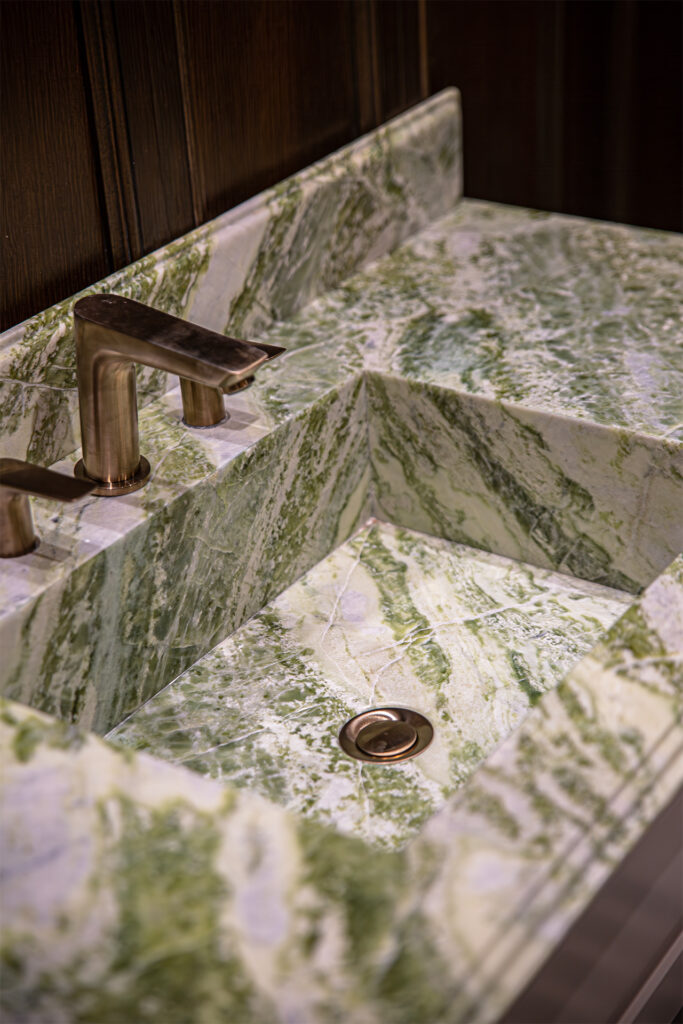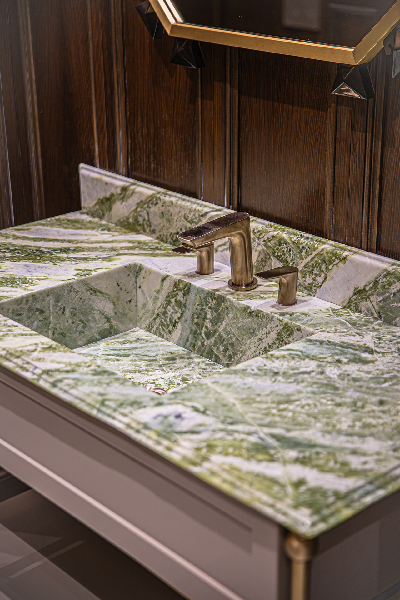 Stoneline natural stone collection, in collaboration with Satt Design, presents exclusive stones that blend aesthetics and functionality. Selected stones such as Verde Brinisi, Tiger Eye, Carrara Gioia, Verde Genova, Morpheus, and Ancient Green are unique examples that make the Stoneline collection special and elegant.