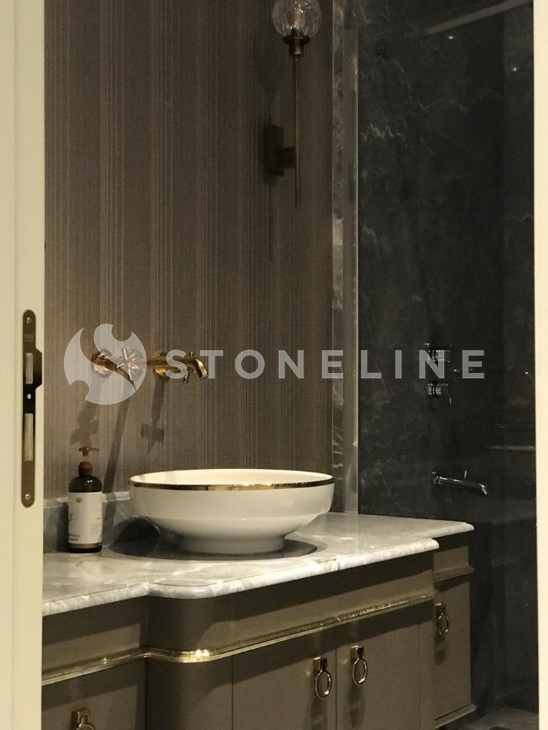 Designed by Zen Architecture, this common space in this residence project is covered with Venus White Extra that has elegant grey veins on white background which is combined with King Black that reflects the noble black color. Bathrooms are covered with Vesalys Extra which resembles a painting while Nero Marquina Azerocare is preferred for its non-stain feature up to 8 hours. You can also discover hundreds of stones from the natural stone selection of Stoneline for your elegant designs.